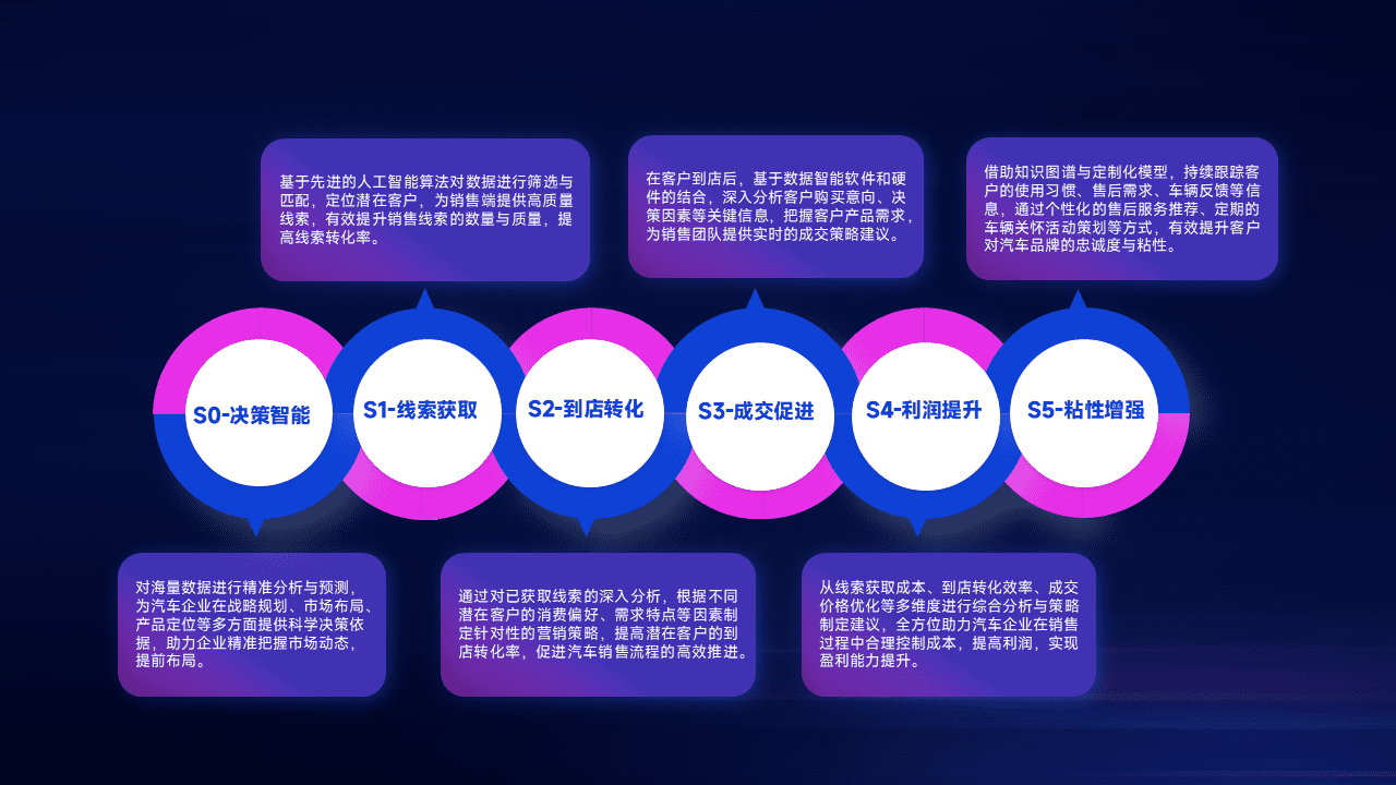基于销售转化漏斗的薄弱环节,,,,为客户提供数据+模型+运营的智能应用,,,实现销售业绩的提升;推动线索管理全链路的精细化管理和运营。。